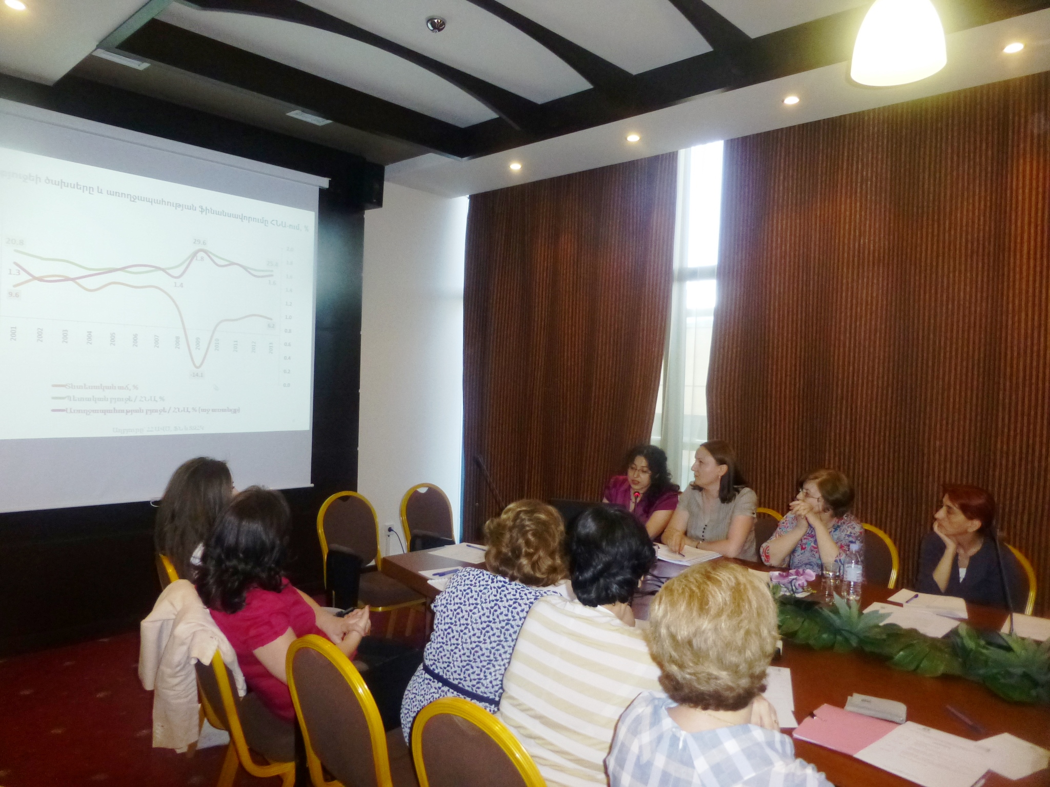 On July 25, 2013 at "Argishti" hall of "Erebuni Plaza" Business Center experts of Economic Development and Research Center introduced main findings of "2013 State Healthcare Budget" and "Social Impact assessment of Copayment System in Armenia" studies to representatives of state and international organizations, Human Rights Defender of the RA, as well as to NGO-s actively working in the sphere and media.